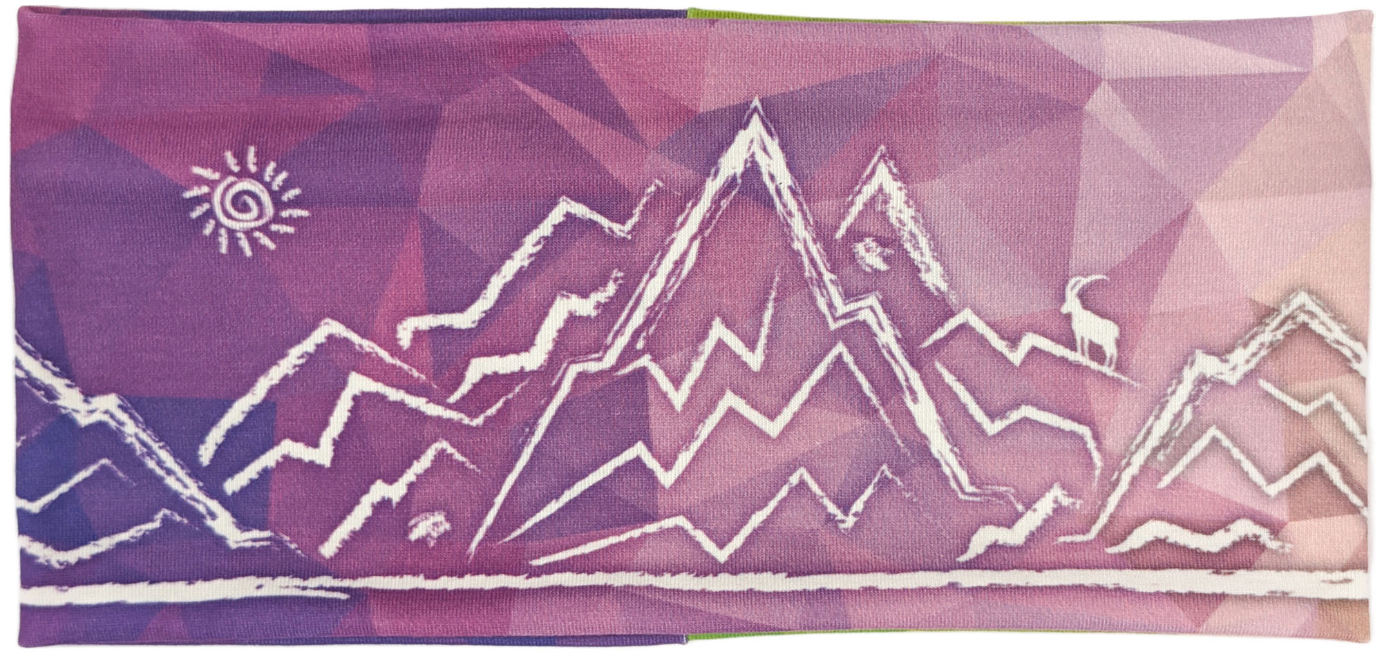 Violett- und Rosétöne im facettierten Look lassen die weiße Bergkette mit Sonne und Steinbock edel hervorstechen. Ein ruhiges, modernes Design mit Alpen-Vibe – wie Abendlicht am Grat, weich und trotzdem markant.